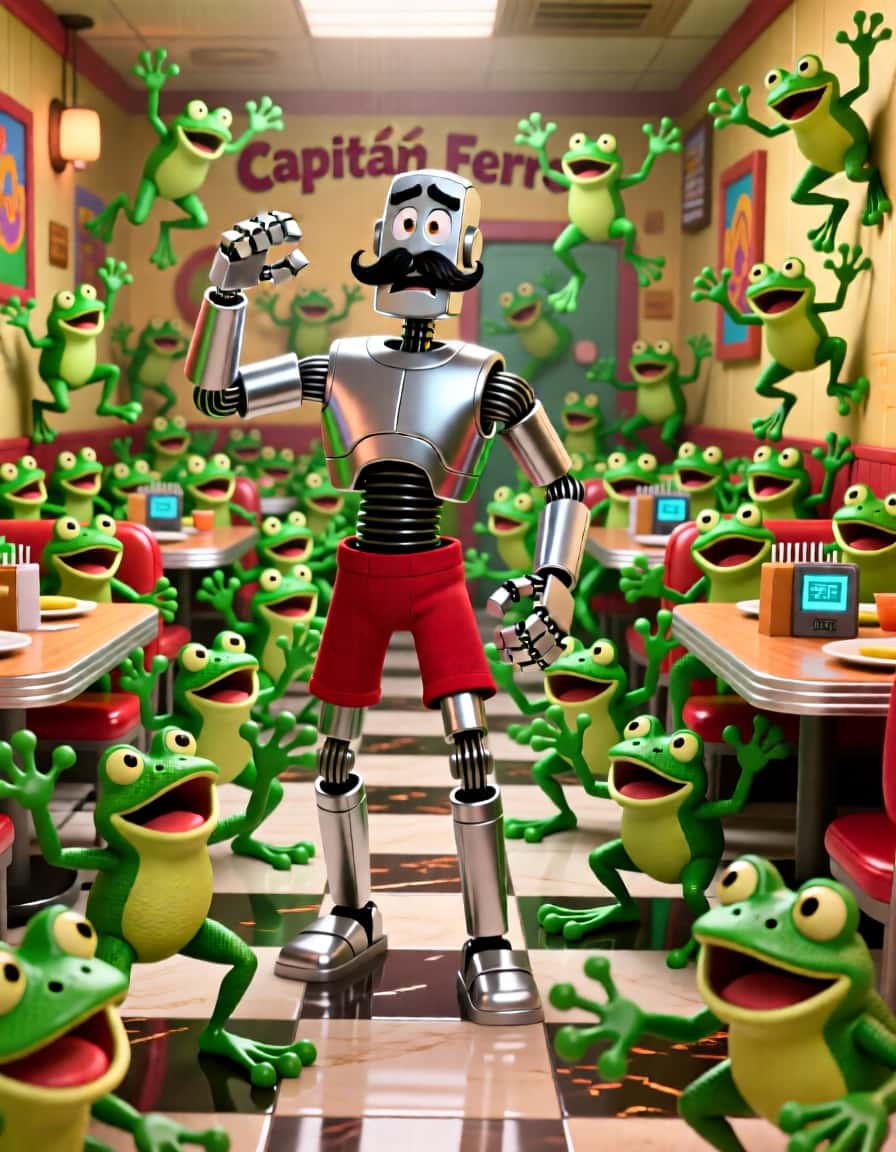 La historia nos lleva a la nave «Comedor del Maná», un lugar donde el orden y el silencio son ley bajo el mando del Capitán Ferro, un robot de metal plateado que valora la eficiencia por encima de todo. Sin embargo, su mundo perfecto se ve sacudido cuando el Abuelo Sabio llega con un mensaje del Gran Creador: la libertad de la tripulación no es negociable. Ante la terquedad de Ferro, una plaga de ranas ruidosas (¡Glup, Glup!) pondrá a prueba su paciencia y su estructura rígida.