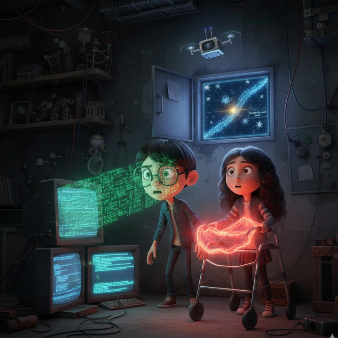 Acompaña a Luca y Gema en una misión épica para salvar la Navidad antes de que el tiempo se congele para siempre. En esta aventura, el tiempo no es solo magia, sino la tecnología más avanzada del universo, y un fallo crítico está a punto de detenerlo todo. Desde un sótano lleno de inventos hasta una base secreta en las estrellas, dos hermanos deberán aprender que la verdadera fuerza surge cuando la lógica y la intuición trabajan en equipo.